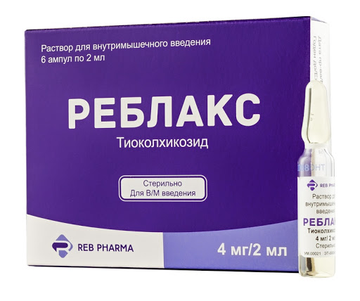 One of the central action muscle relaxants used in the muscular-tonic syndrome in neurology and rheumatology is the drug product Reblaks. An active ingredient in this drug is Thiocolchicoside, the semi-synthetic muscle relaxant derived from the natural glycoside colchicoside which exhibits selective affinity to gamma-aminobutyric acid and glycine receptors. That ensures its action at various levels of the nervous system in case of both central and peripheral genesis spasms [3, 14]. It is suggested that gamma-aminobutyric acid receptors activation occurs at the spinal cord level and contributes to the striated muscles relaxation. Glycinememic effects are manifested at the brain and spinal cord level. Thiocolchicoside possesses an anti-inflammatory, analgesic and anesthetic effect of muscle relaxant and is used in clinical practice in a number of pathologies [2, 4, 5, 9]: