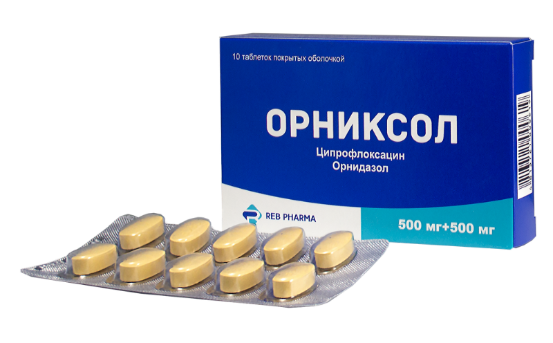 Active substance: Ciprofloxacin 500 mg, Ornidazole 500 mg.