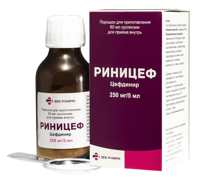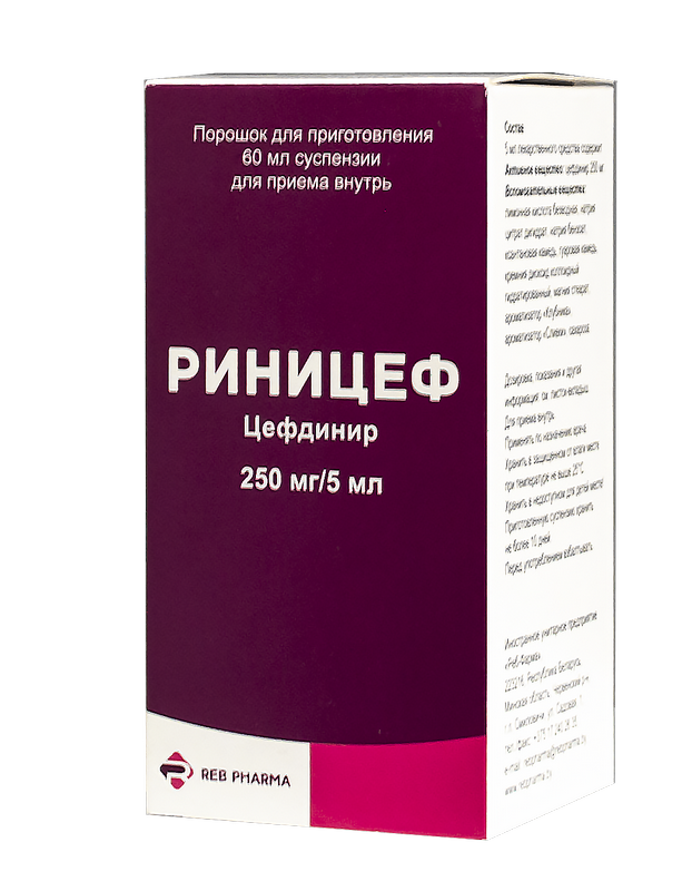 Concomitant administration of cefdinir and antacids leads to decrease in cefdinir absorption rate (C max and AUC) by approximately 40%. In necessity of antacids administration during the course of treatment with Rinicef it should be taken at least 2 hours before or two hours after antacids.