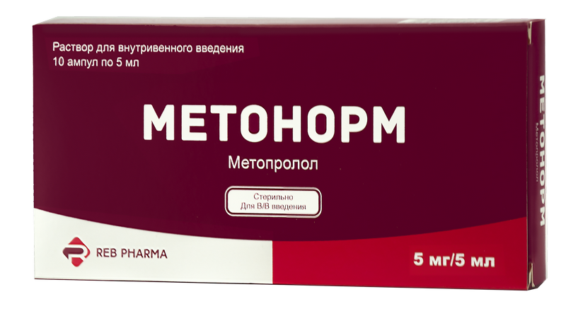 Intravenous administration of Metonorm should be carried out in a specialized medical department in patients with stable hemodynamic state. The therapy begins with a dose of 5 mg (5 ml). The drug dose can be repeated every 2 minutes with blood pressure, heart rate and ECG control. The second or third dose should not be given if systolic blood pressure <90 mm Hg, heart rate <40 beats/min and PQ interval > 0.26 seconds, or if an increased dyspnoea or cold clammy sweat appeared. Maximal dose is 15 mg (15 ml). In 15 minutes after the last injection, 50 mg of Metoprolol tartrate should be taken orally every 6 hours for 48 hours period.