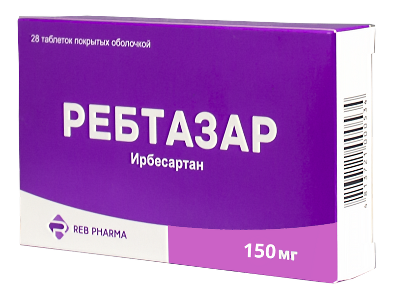 Rebtazar hypotensive effect develops within 1–2 weeks with maximal therapeutic effect achieved in 4-6 weeks from the treatment beginning. Antihypertensive effect persists through a long-term treatment. After treatment discontinuation blood pressure gradually returns to its initial value; withdrawal syndrome has not been observed. Irbesartan does not affect uric acid plasma concentration or uric acid excretion into the urine.